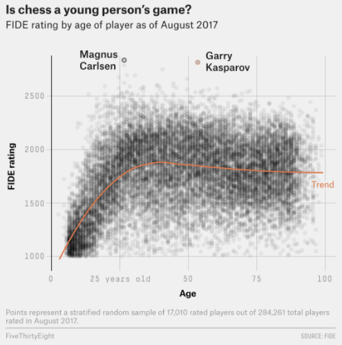 Like athletes, and – well – like all of us, chess players’ abilities peak in in their late thirties, and then most of them get worse.