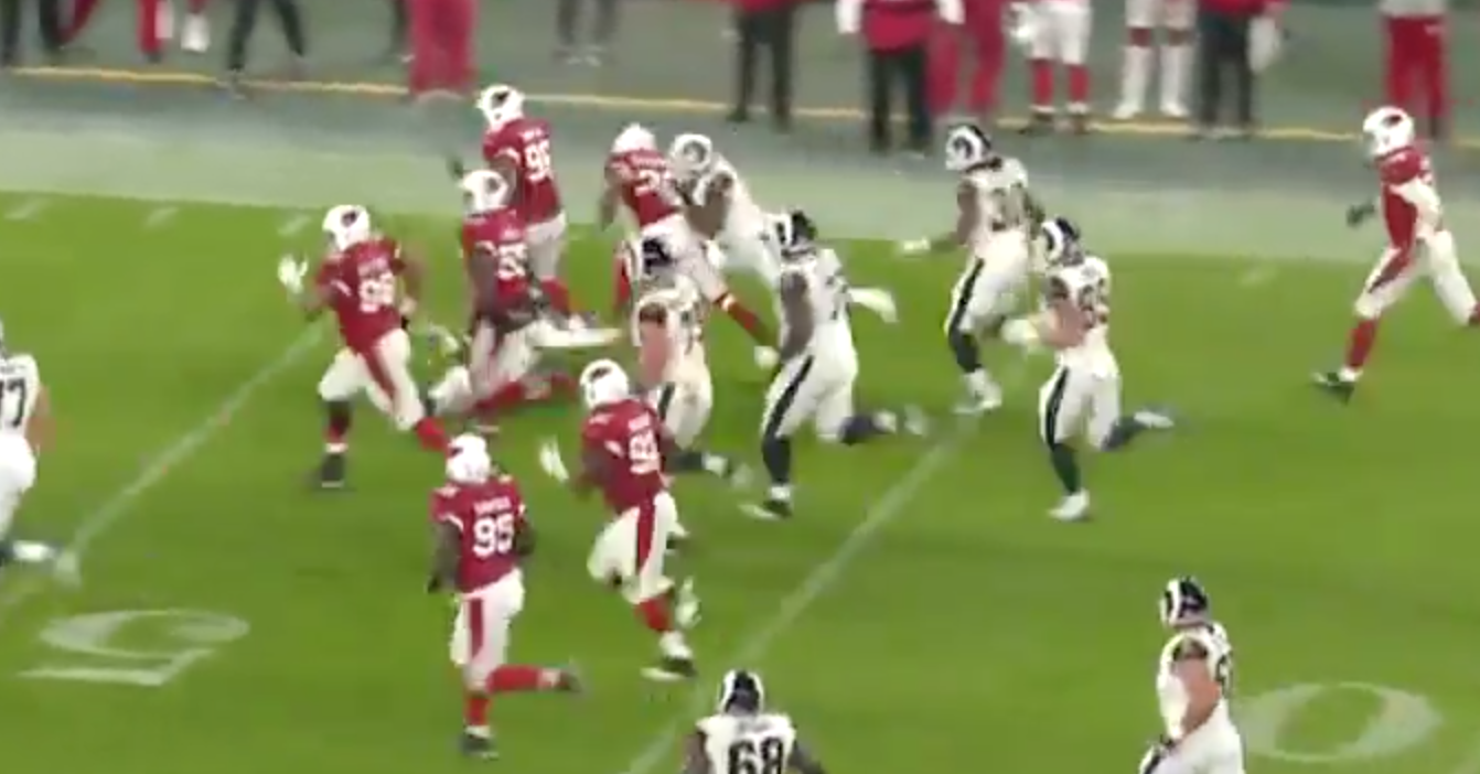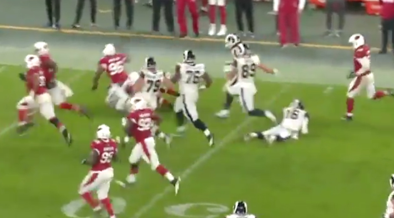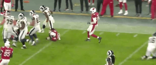 Source: “Breakdown of Goff’s TD Saving Tackle on Mathieu“, Beefjurky, imgur (10/26/2017)