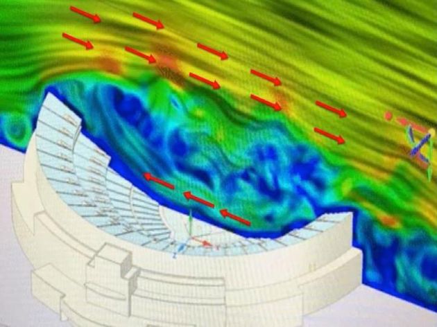 [T]here is a lot of vertical wind inside stadiums, which has a significant impact on the flight of the ball over its entire trajectory. Prevailing winds (see graphic below) blowing over a stadium in one direction, but the winds at field level doing the exact opposite, and there’s a lot going on in between. We model the wind field down to each square foot over the entire area where a ball could fly. Then we use those winds for our 3D-Trajectory model with increments of 0.001 seconds.