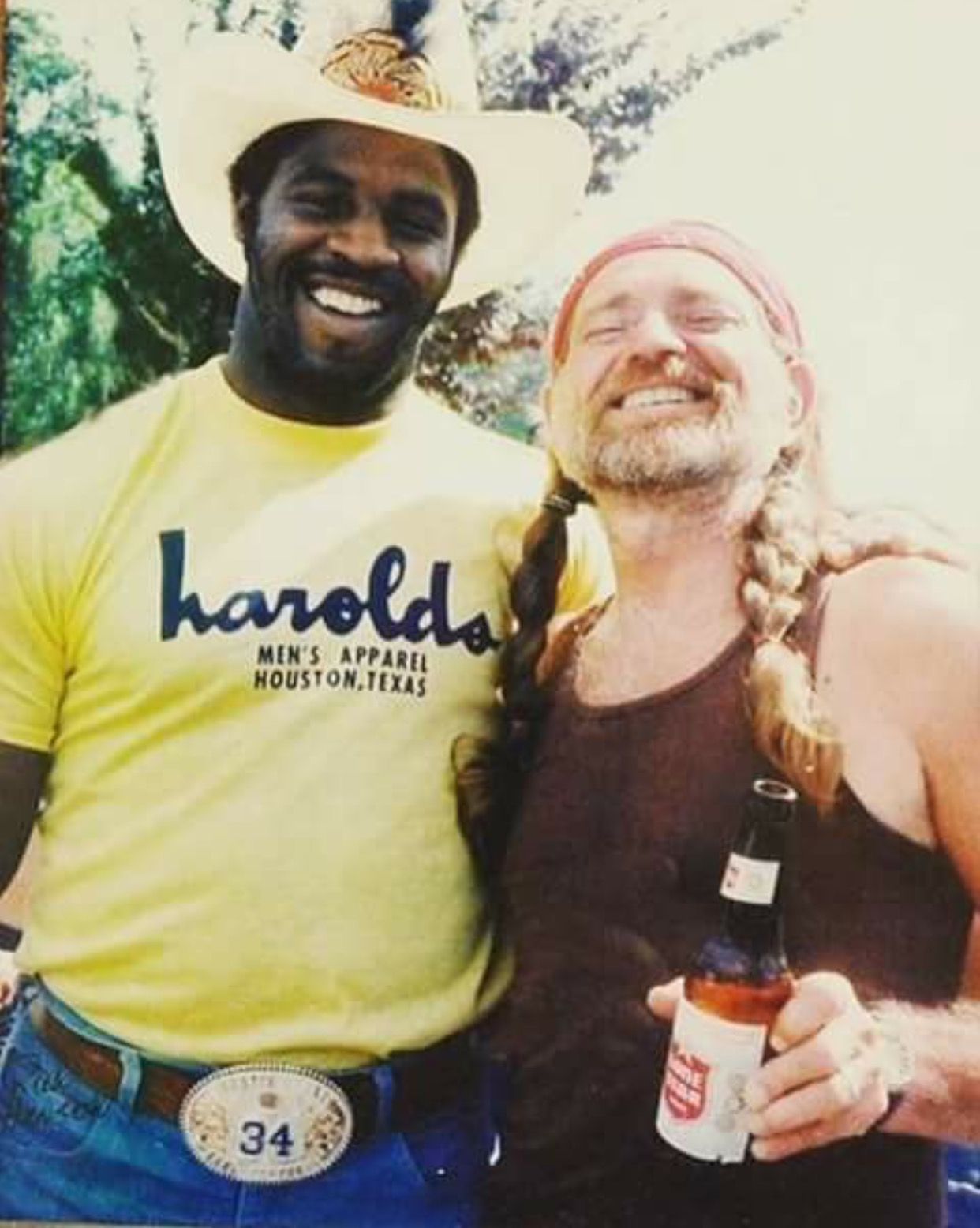 That last anecdote should make you laugh. Earl Campbell was 5’11 and 232 pounds of muscle, possibly the most physical running back of all time. Willie Nelson is reportedly 5’6, 150 pounds. I figured they must have made quite the sight, jogging in the Texas heat, and then I found this pic: