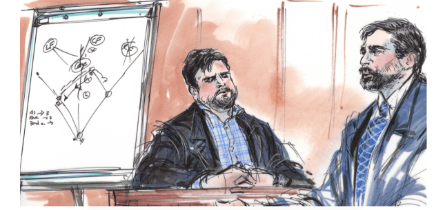 “You’re telling this jury that the JV left fielder for the Gill St. Bernard’s team reached the ball at the fence and threw a strike to the third baseman?” Sinins asks. “That’s what you’re telling this jury?!”