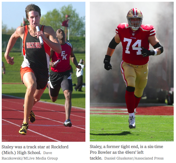 It’s no joke. Staley was a friggin’ sprinter in highs chool (dude ran 200 in 21.9 seconds in high school!). Or how about this: