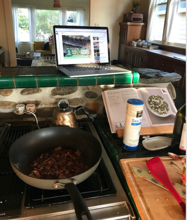 Thompson, missing sports and the ritual of eating a great meal at one of his three favorite restaurants in the world, looked up and made a traditional Roman dish with a bottle of nice red wine, a bottle “that normally would be saved for a special occasion–although I’d argue that imagining the world before the virus and being hopeful about the return of that world is as special an occasion as there is right now.”