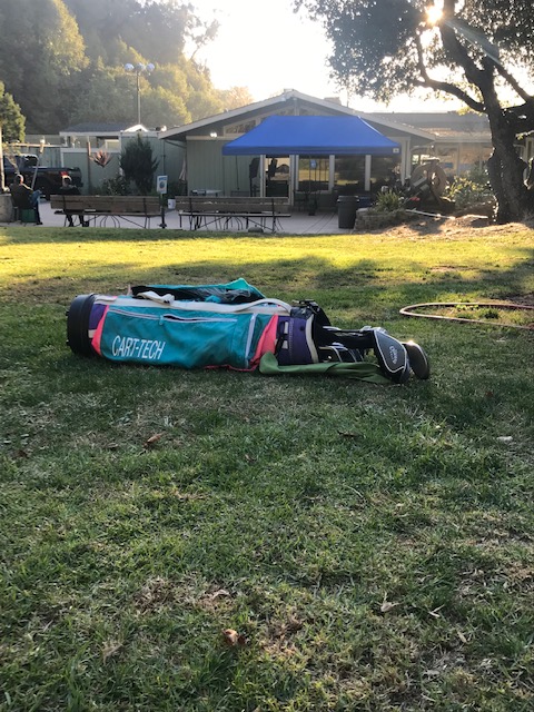 They spot me coming towards them on the first tee. Ragged bag, hand-me-down clubs, trail running shoes. Their practice swings stall. What the hell are we in for? Brings me a smile every time.