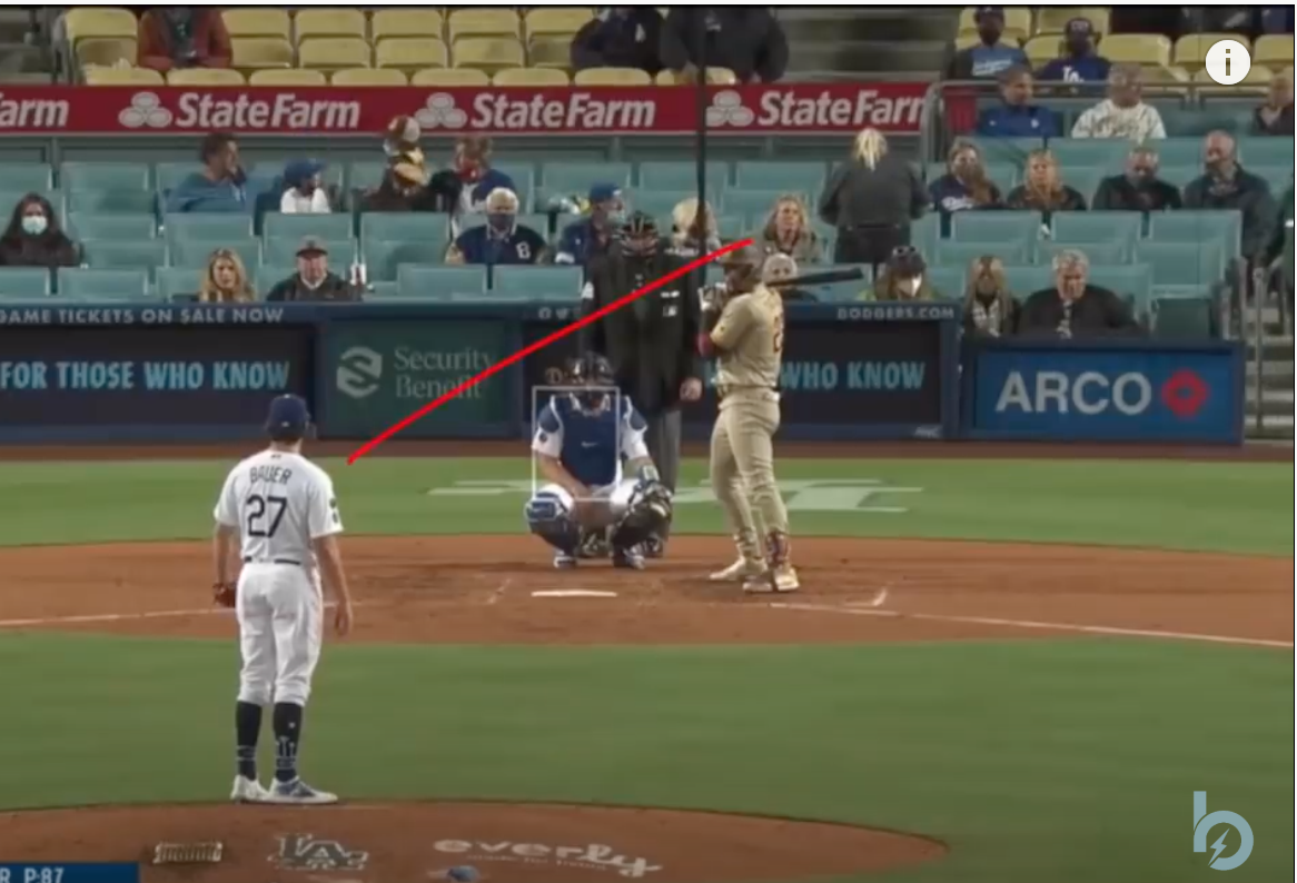 The Padres took 3 of 4 from the Dodgers last weekend, thanks in large part to Fernando Tatis, back from his shoulder injury, who hit two dongs off Kershaw on Friday, two more off Bauer on Saturday, and then a fifth off Dustin May on Sunday. That is quite the weekend. A little controversy arose during that double dong game against Bauer, though.